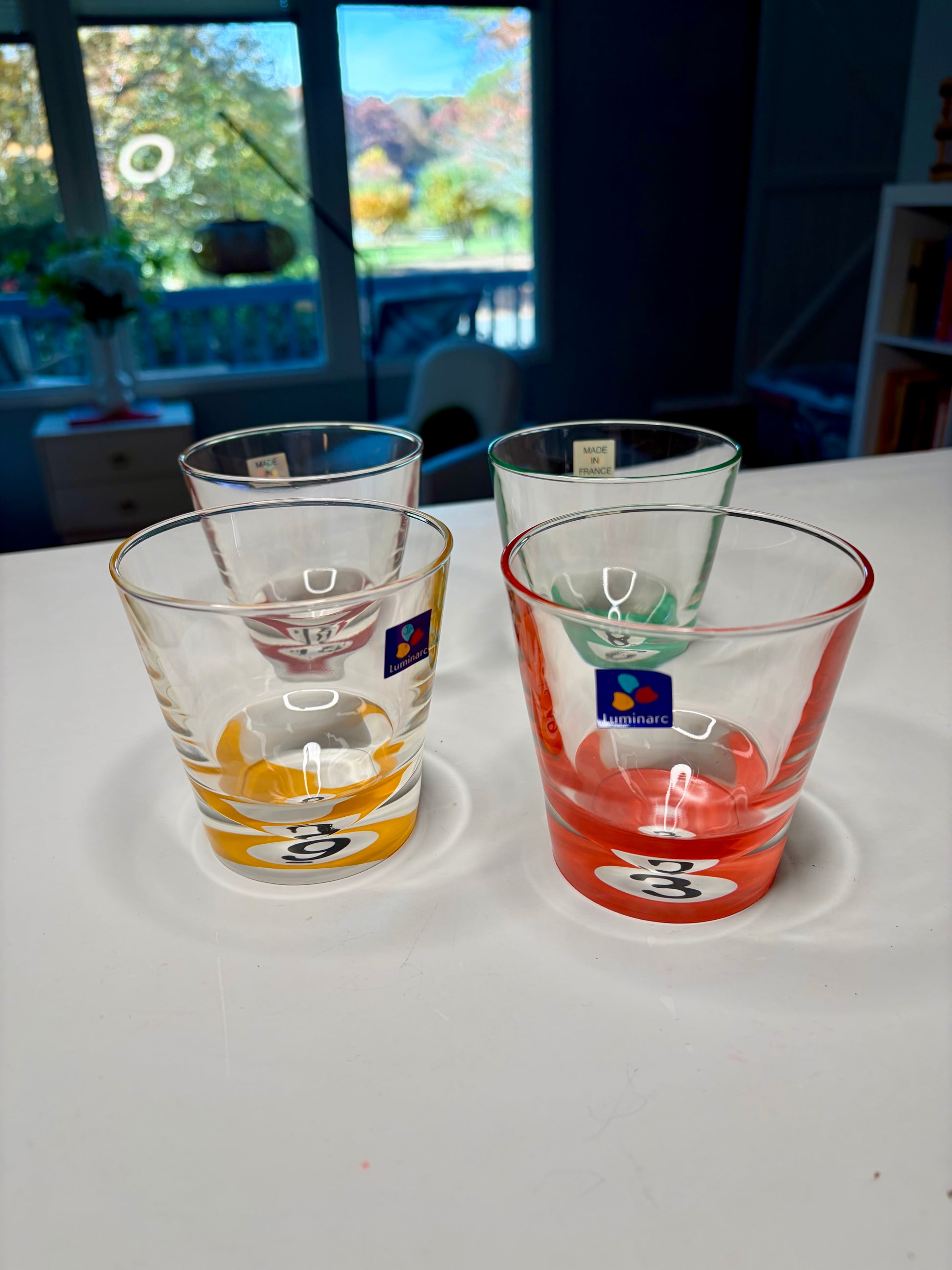 🎱Available now! 1980s, NWT, set of 4, Luminarc “Pool Parlor” billiard, low ball glasses. Made in France. Never used & in mint condition! These glasses are a perfect novelty addition to your game room or bar. Each glass measures 3.5” in height and diameter. $78 shipped🎱